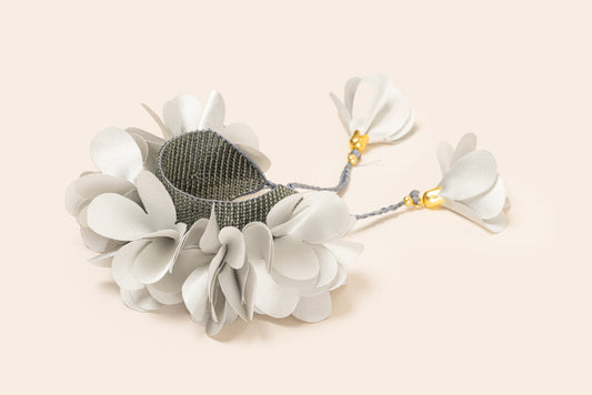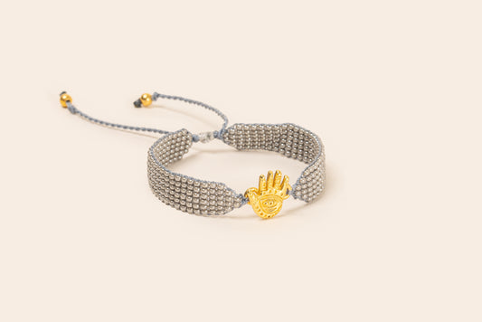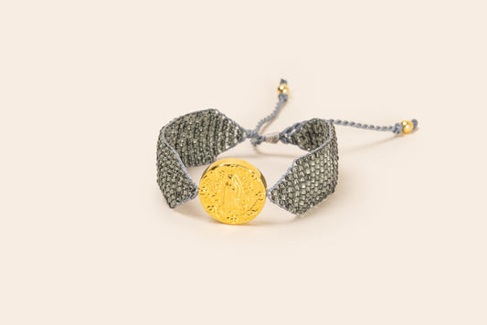 PULSERA DE PERLA CON VIRGEN Y FLOR DE SEDA