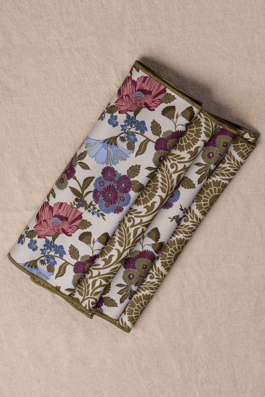 4 Manteles Individuales y 4 Servilletas Flores Verde
