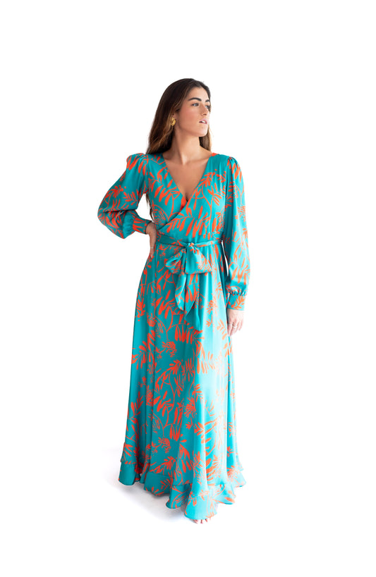 Vestido Paula Verde con Naranja